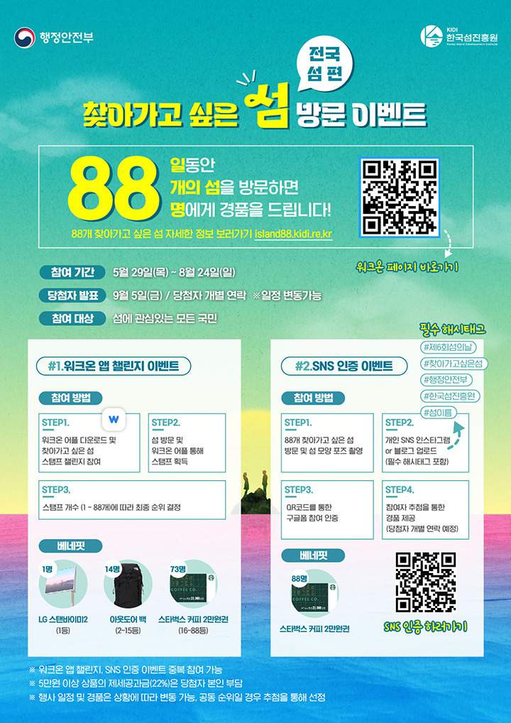 2.  88일 동안 88개의 섬을 여행하며 인증을 남긴 국민들에게 다양한 경품